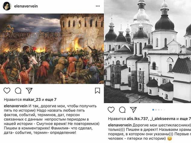 Конечно, задания в соцсети не отменяют стандартных форм обучения и проверки знаний — дети учат факты из истории, сдают зачеты, пишут контрольные и отвечают устно. Задания в Instagram** позволяют ученикам получить дополнительную пятерку. Учительница рассказала, что на данный момент такой возможностью воспользовались около семи учеников из трех классов.