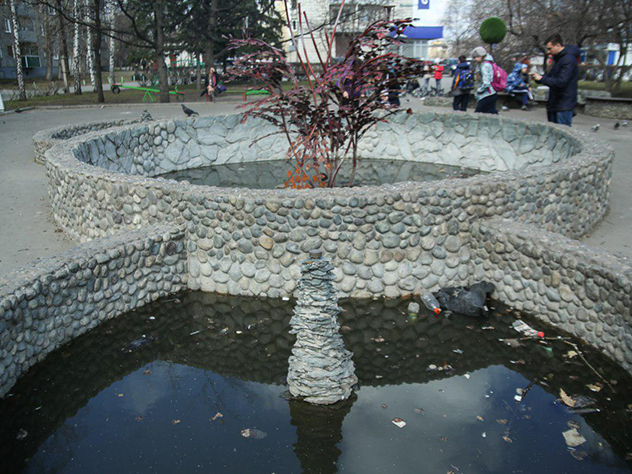 Возмущение барнаульцев состоянием фонтана, расположенного в центре города, на пересечении ул. Молодежной и пр. Красноармейского, вполне можно понять: вроде бы в городе все озабочены чистотой и благоустройством улиц, а тут - такое безобразие: мусор, палки и десяток голубиных трупиков в воде.