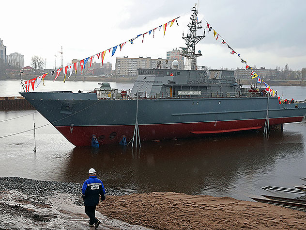 На Средне-Невском судостроительном заводе в Петербурге торжественно спустили на воду третий стеклопластиковый тральщик проекта 12700 «Иван Антонов». Новый противоминный корабль создан по технологии, в настоящее время освоенной только в российском кораблестроении.