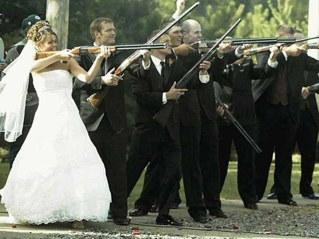На этот раз брачующимся не повезло. Мамочки, прогуливающиеся с младенцами по парку, были настолько возмущены непристойным поведением молодежи, что решили принять меры. Тем более что несколько гильз, по словам очевидцев, упали прямо рядом с колясками и детьми, сообщает .