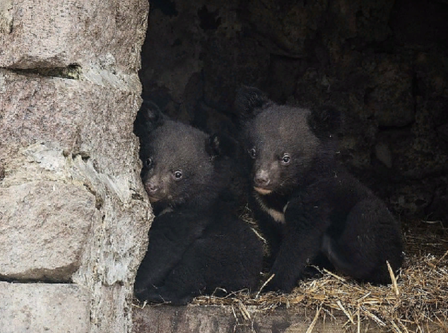 Вот и у пары гималайских белогрудых медведей Ежика и Азы родились два очаровательных детеныша. Мама долго прятала медвежат в берлоге. О появлении потомства работники зоопарка могли узнать только по тому, что медведица после рождения крошек, как обычно, выгнала папашу-медведя из общей берлоги.