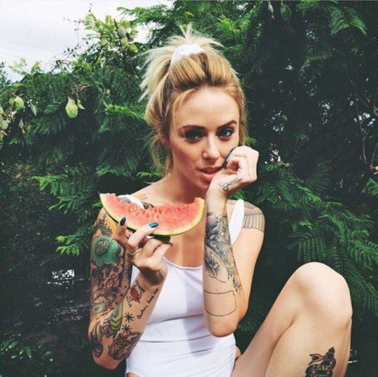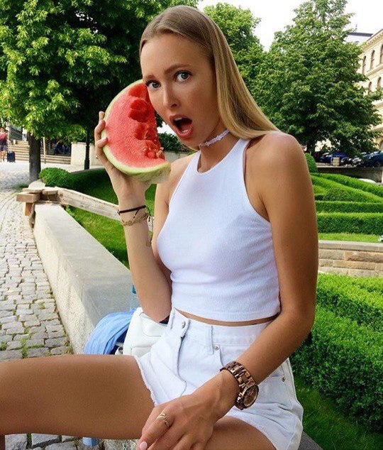 Глядя на эту аппетитную девушку, хочется совсем не арбузика...