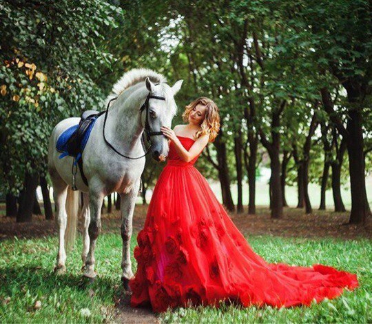 А в таком платье в парк ходят только с профессинальным фотографом. Согласитесь, трудно представить, что она сейчас запрыгнет на коня и поскачет галопом.