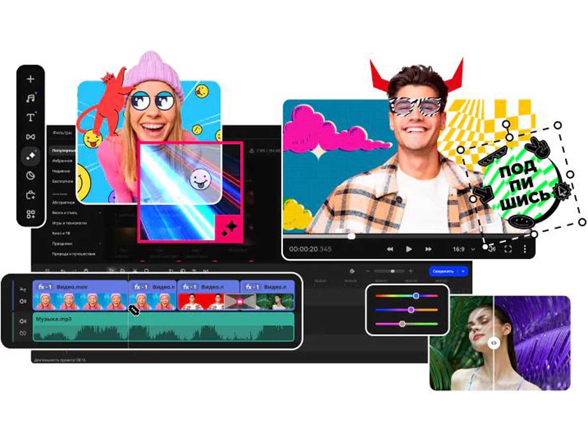 Плюсы: отечественный продукт, богатые подборки эффектов под разные категории, стабильная работа. Отличный выбор, если хочется просто скачать редактор видео, сразу приступить к делу и добиться классного результата.