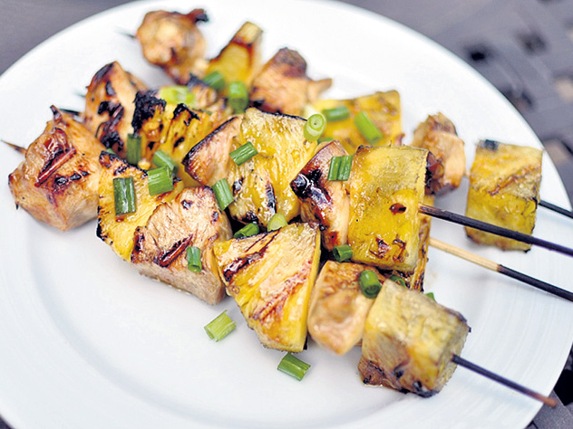 Ананасы, кстати, замечательно сочетаются с курицей, если кто не знает. Кудахтающую красавицу в этом случае лучше мариновать в натуральном йогурте или нежирном майонезе. Можете поэкспериментировать с еще одним вариантом: апельсин. Маринуем курицу в нем и жарим на огне с кусочками. Сбрызгивать такой вариант лучше всего чесночной водой.