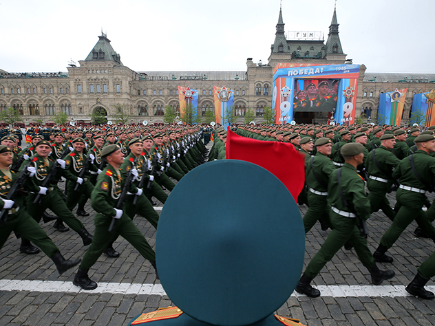 После того, как по Красной площади прошли сначала военные барабанщики, а затем пешие колонны, всего около 13 тысяч человек, разбитые на 33 парадных расчета - военнослужащие, курсанты, суворовцы и воспитанники Нахимовских училищ, брусчатка загудела под тяжелой военной техникой.