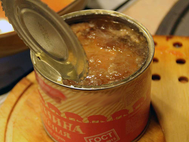 Проверить качество тушенки, стоящей на прилавках магазинов Санкт-Петербурга, решили активисты из организации потребителей . «Общественный контроль». Каково же было их изумление, когда выяснилось, что в 9 из 10 банок вместо мяса обнаружились жилы, соя и загустители.