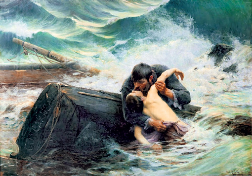 Узнал кавалер, что любимая ему изменила, и решил с ней расквитаться. Связал, бросил в лодку и поплыл в шторм. Но пути подостыл и развязал негодяйку. А то возьми и сама кинься в воду. Ревнивец сумел выловить девушку, но та была уже мертва. Прошептав «прощай», отпустил он тело любимой на волю волн.
