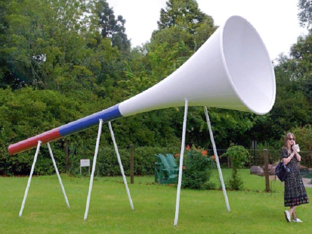 Внутри гигантской вувузелы установят динамики и микрофон, реагирующий на человеческую речь. Стоит заговорить, закричать или начать петь, как вувузела будет издавать звуки.