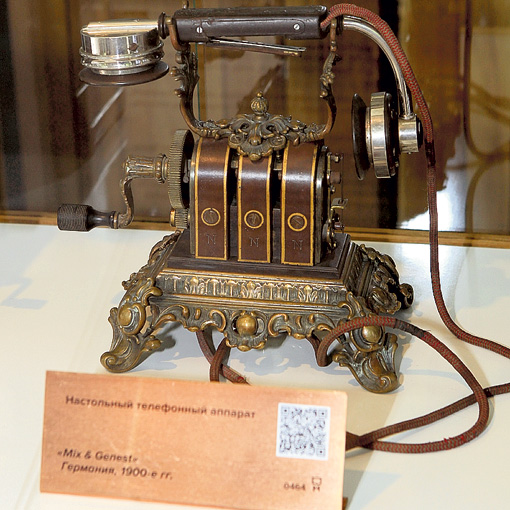 В числе раритетов - телефон, принадлежащий семье Николая II. После революции он попал в Англию, потом во Францию и вот вернулся в Россию.