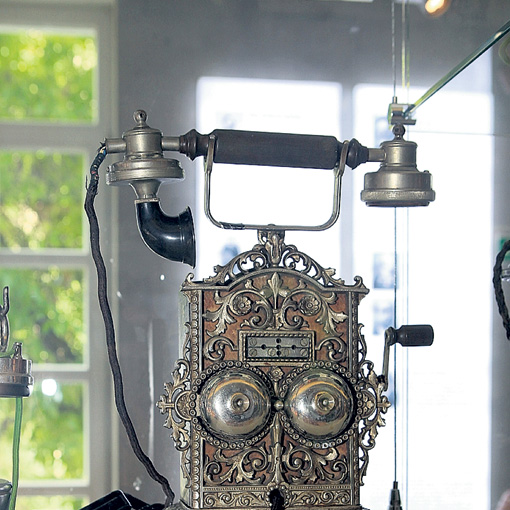 Большинство из полусотни представленных в музее экспонатов - подлинные. Трубкам Белла, действие которых продемонстрируют в начале экскурсии, - полторы сотни лет: их начали использовать в 1875-м. Тут же на стене более продвинутые образцы со звукоприемниками, которые регулируются по высоте, и обитыми бархатом подлокотниками - для любителей подолгу зависать на трубке. А вот «гигиенофоны» - телефоны с серебряной ручкой: благородный металл убивает микробы.