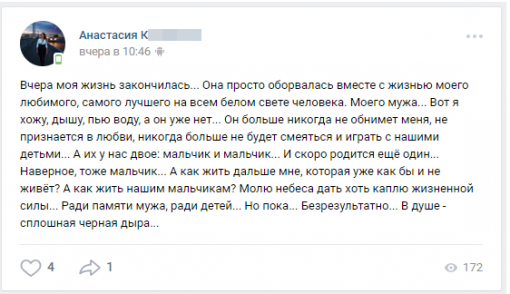 Позднее на своей странице в соцсети молодая женщина разместила прощальный пост.