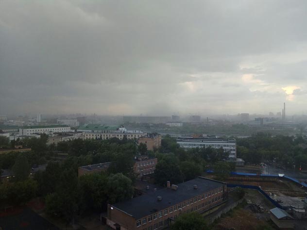 Раскаленную Москву накрыл проливной дождь со шквалистым ветром