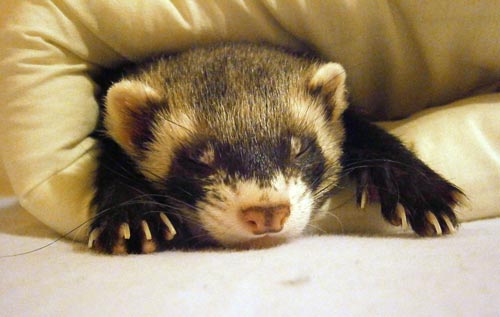 Если вас подолгу нет дома, а погладить кого-то после работы все же хочется, то можно смело заводить хорька. Будьте уверены: зверек проспит почти все время, пока вас не будет дома. Хорьки вообще любители поспать. Бодрствуя, они проводят всего 4-6 часов в сутки.