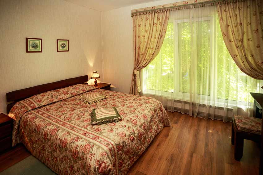 На территории отеля можно снять коттедж хоть на все лето, и даже ездить отсюда на работу: до МКАД по Симферопольскому шоссе всего около 30 километров. Пусть семья – с детьми, бабушками и дедушками – наслаждается свежим воздухом и покоем. В зависимости от выбранного варианта питания можно полностью отказаться от готовки, а можно частично готовить самим на мини-кухне, которая есть в каждом домике. И посуда тоже имеется…