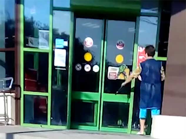 Упорство уборщицы в борьбе с автоматическими дверями позабавило пользователей Сети