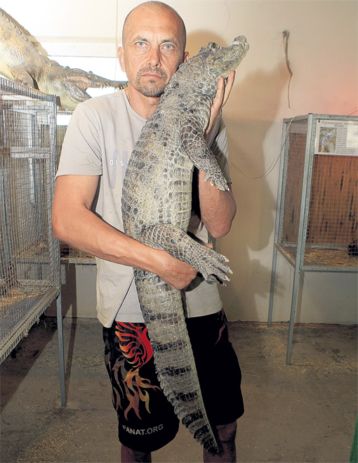 - Первый питомец появился в ноябре прошлого года. Позвонили знакомые, говорят, забери ради бога. Крокодильчик был крохотный - 16 сантиметров, поначалу я его держал в аквариуме, но он прибавлял по 12 сантиметров в месяц. Представители «Газпрома», приезжавшие недавно на ферму, пошутили: у нас акции такими темпами растут. Ну, мы и решили: будет наш первенец Лехой Газпромом. Кстати, вы не представляете, сколько сейчас людей держит крокодилов дома! Когда появился Леха, я звонил по объявлениям о продаже хищников, - у одного заводчика в квартире было сразу 100 штук! Набрал его через два месяца - извини, говорит, всего пять осталось. Новорожденный детеныш стоит около 15 тысяч рублей.