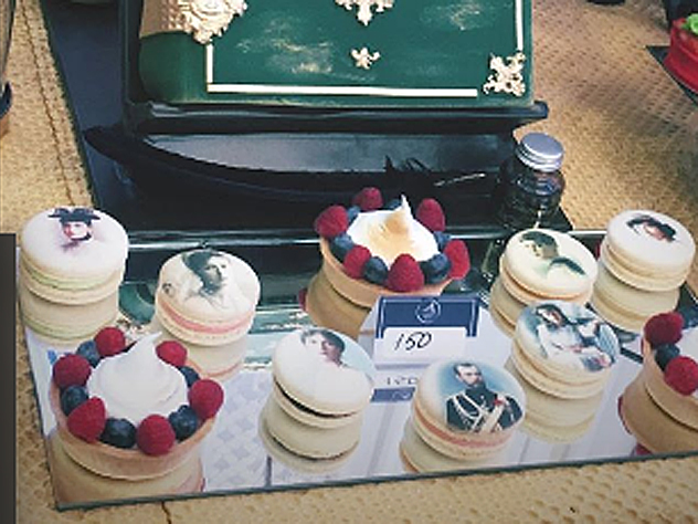 Но особое внимание к себе привлекли пирожные, на которых были нанесены черно-белые портреты последнего русского императора Николая II и других членов расстрелянной царской семьи.