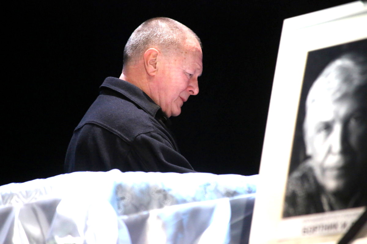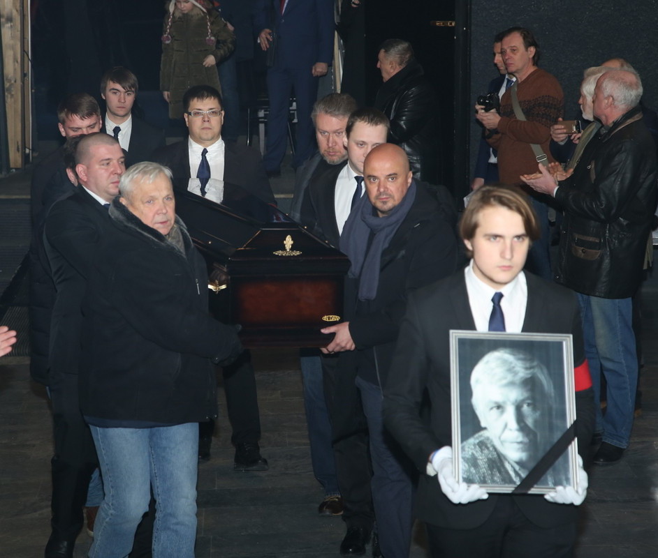 Проводить артиста в последний путь пришли его родственники, друзья и коллеги: Евгений Герасимов, Михаил Полицеймако, Василий Мищенко, Константин Желдин, Виктор Мережко, Никита Высоцкий, Юрий Смирнов, Вадим Туманов, Борис Галкин, Алексей Штурмин, Владислав Маленко, Павел Майков.