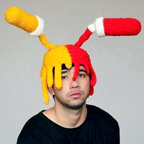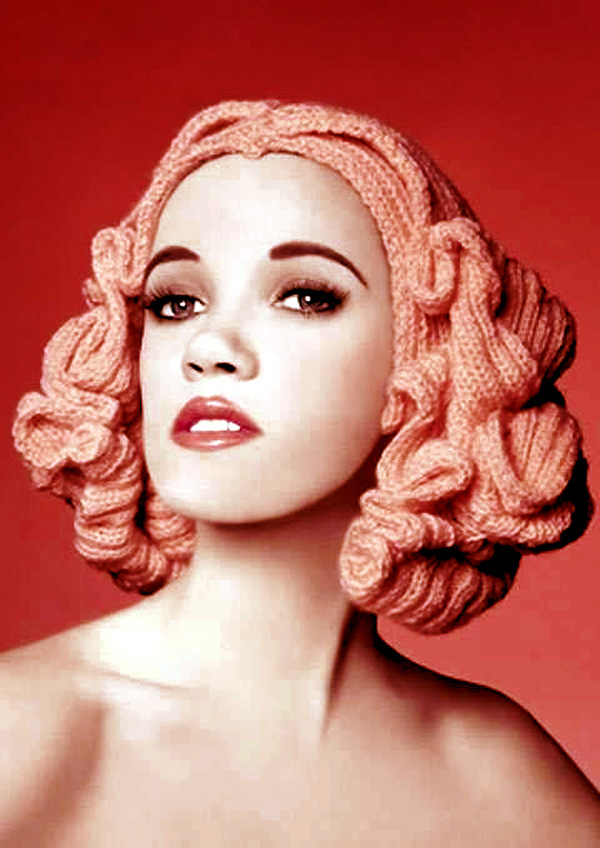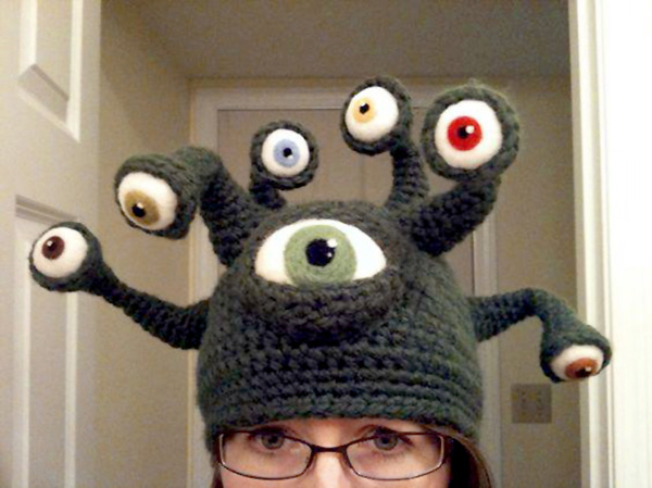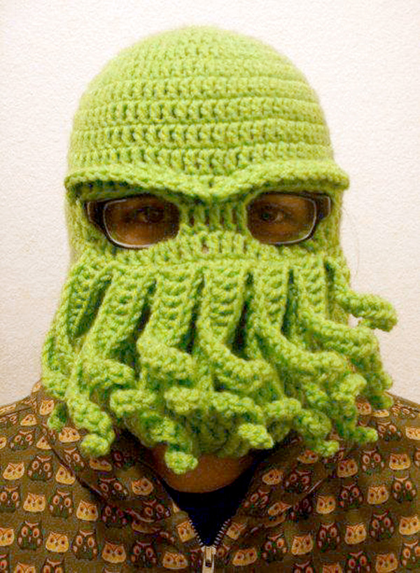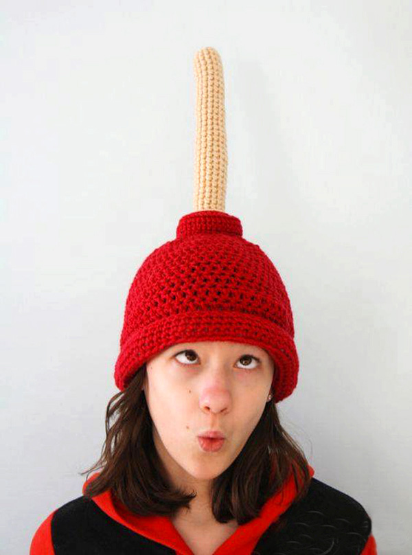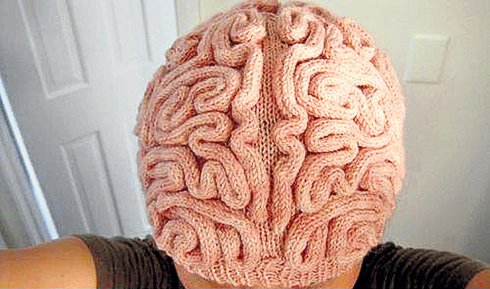 - В шапке «с мозгами» сначала вяжется собственно шапочка, а потом к ней пришиваются «извилины» - они получаются из полотна длиной примерно 2 м. Чешите репу!