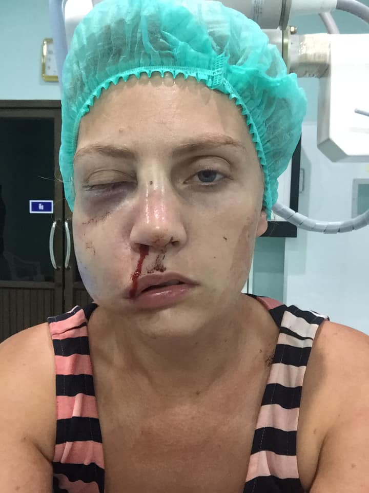 «Я очнулась в луже собственной крови. Я не знаю, кто вызвал скорую, наверное, соседи. Самое ужасное, что все это происходило на глазах моего маленького сына. Родители Глеба — состоятельные и влиятельные люди, а мои — нет. Мои родственники не могут прилететь в Таиланд прямо сейчас. У меня нет медицинской страховки. Я уже потратила все деньги, что у меня были, на медицинскую помощь. На данный момент у меня сломана лицевая кость и требуется срочная операция. Голова пробита, три шва. Сломан нос. Тяжелая черепно-мозговая травма», — сообщила девушка.