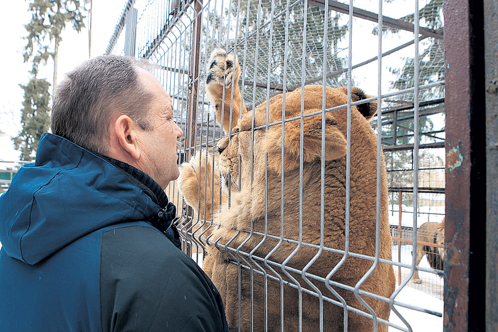 Черногривый лев Боня целиком занял бы мою шестиметровую кухню. Рык Бонифация потрясает. В деревню Андрейково под Дмитровом он прибыл четыре года назад милым котиком с Арбата. В вольере по соседству львица Алиса - ее подарили на день рождения олигарху, который не подумал, что зверя надо кормить. Симу нашли в кальянной, плохо пахнущую и со следами ожогов от окурков на теле. У львицы рядом - искалеченная лапа, за которую нелюди ее, маленькую, подвешивали. Кошечку трижды прооперировали.
