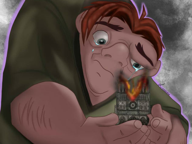 Квазимодо, оплакивающий Нотр-Дам, стал новым мемом