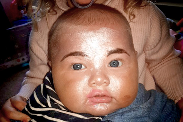 Сестра наложила на лицо пятимесячного брата густой слой «загара»
