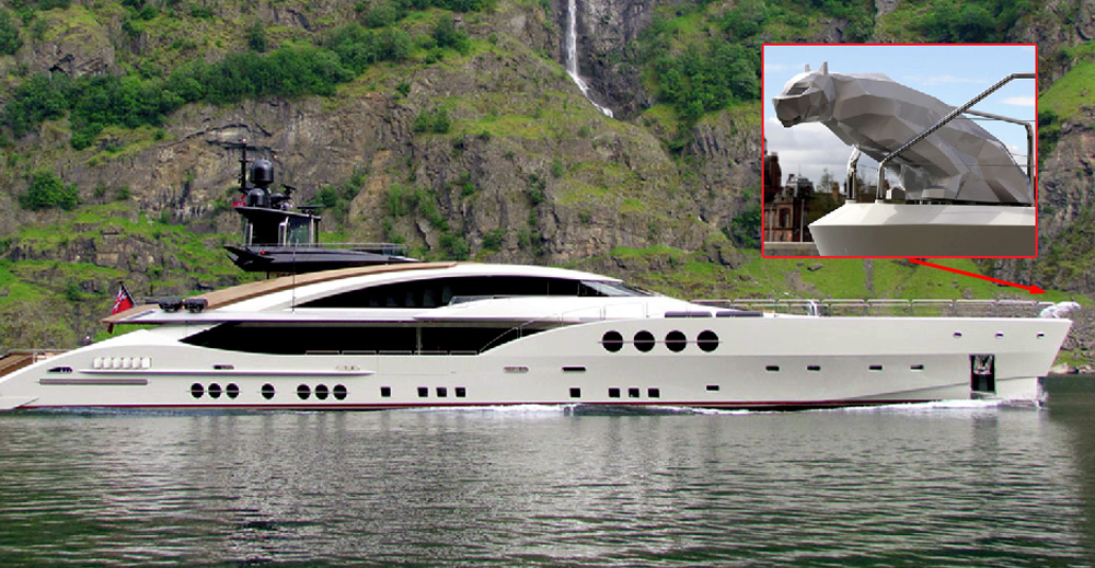 Несложно догадаться, что буква «M» в названии яхты означает Мария. По этой же причине нос посудины украшает кариатида в виде стальной киски, видимо, символизирующей саму Lady.