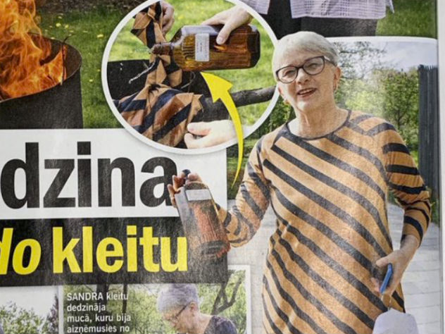 Для того, чтобы никто не усомнился в чистоте ритуала, Калниете смочила наряд в спирте, который достался ей от свекра, работавшего врачом в госпитале латышского легиона СС. Отчет об этом появился 10 мая на страницах одного из глянцевых журналов, который посвящен светской жизни республики, сообщает .