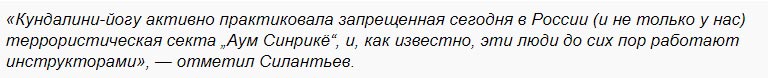 Достаточно сказать о том, что секта «Аум Синрикё» использовала для воздействия на своих членов практики кундалини-йоги.