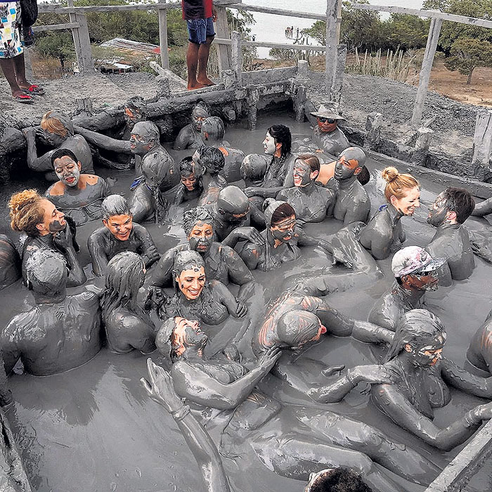 В 50 км от Картахены расположен холм Lodo el Totumo, известный местным как «вулкан». На самом деле его «кратер» наполнен целебной теплой грязью, по консистенции напоминающей крем. Только заходишь внутрь, тебя хватают несколько человек и делают массаж - разумеется, в ожидании чаевых. Массажисты прикольно передают тебя друг другу - легонько толкают, и лежа скользишь по грязи, как по льду. После этого в близлежащем водоеме, за чаевые опять же, клиента от грязи отмывают.