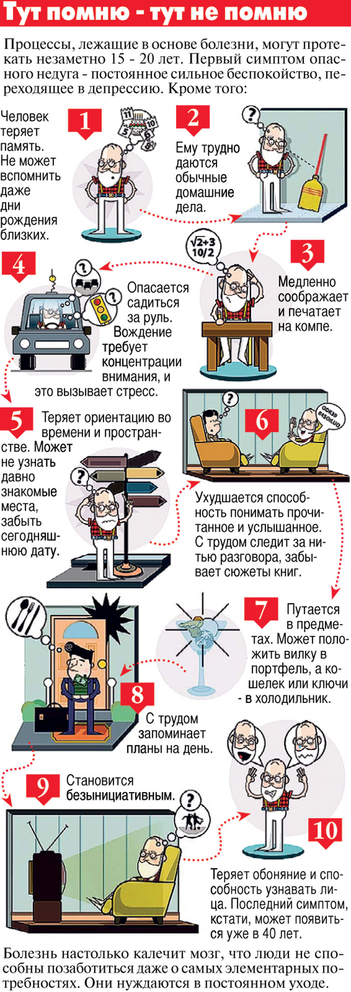 - Человек теряет память. Не может вспомнить даже дни рождения близких.