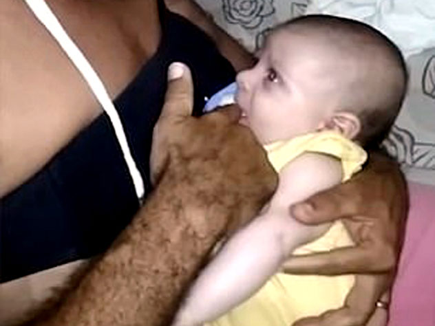 Молодой папаша из городка Капим-Гроссо, что в бразильском штате Баия, потерял покой и сон: стоило его жене уйти на работу, как трехмесячный Винисиус ни в какую не желал пить из бутылочки. Но нужда заставит. Пораскинув мозгами, отец младенца нацепил на свое лицо фотографию матери малыша. А бутылочку со сцеженным молоком пристроил за повязкой на груди. Смелая идея сработала - Винисиус принялся сосать за милую душу.