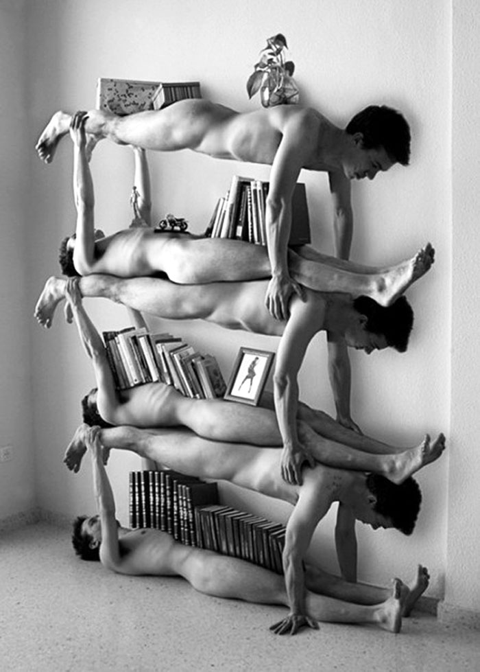 Если вы хотите обвинить авторов в сексизме, то ответ на упреки в эксплуатации женского тела по-мужски весомо, грубо, зримо даст испанский фотограф и дизайнер Давид Бласкес. Он создает мебель из обнаженных мужских тел. Правда, она разборная, недолговечная. По мнению автора, каждого из нас можно представить в виде кровати, гардероба или, допустим, дивана. Что он и сделал при помощи шести натурщиков. Голые парни, устроившись подобающим образом, изобразили тот или иной предмет мебели. После чего Бласкес их сфотографировал и выставляет снимки в галереях всего мира. Остается надеяться, что кто-нибудь выполнит всю эту красоту из дерева, а некий продвинутый домовладелец поставит поделку на видном месте.