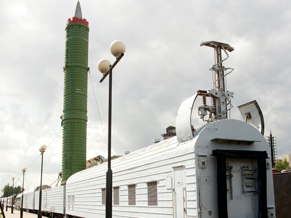 Боевой железнодорожный ракетный комплекс внешне выглядит как обычный товарный состав, но вместо груза он несет три межконтинентальные баллистические ракеты с 30 боеголовками мощностью 550 килотонн каждая.