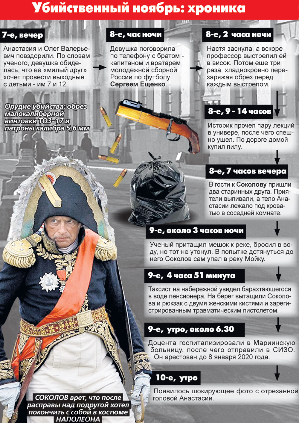 Соколов уверяет: девушка первой набросилась на него с ножом. Ему мало кто верит, потому что за Настей подобного не водилось, а вот историк «включал Наполеона» на ровном месте. К тому же дома у него нашлись неопровержимые улики.