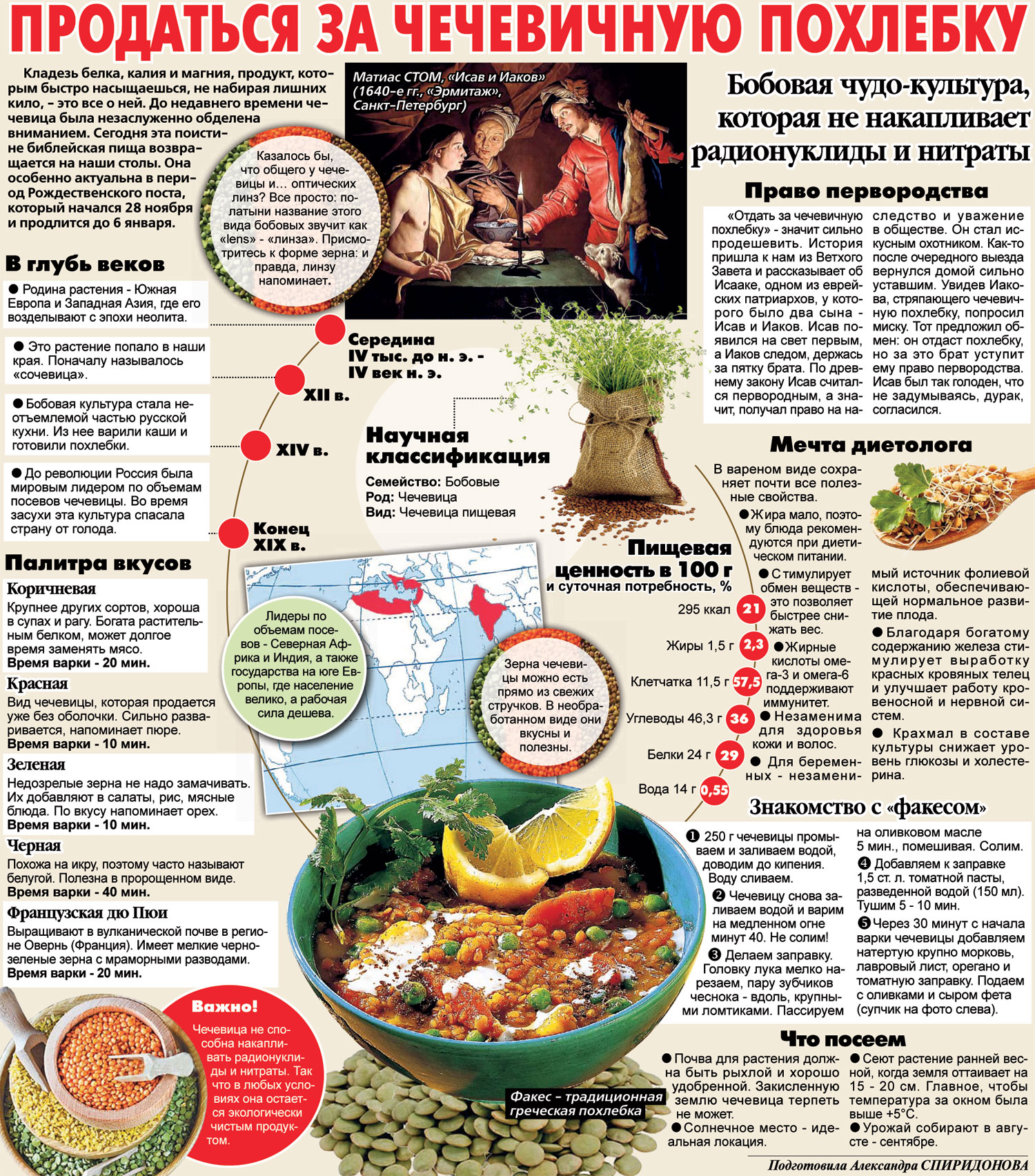 - Чечевица не способна накапливать радионуклиды и нитраты. Так что в любых условиях она остается экологически чистым продуктом.