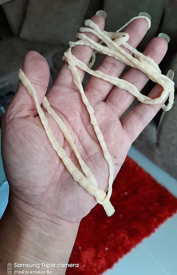 По словам 44-летнего мужчины, не побрезговавшего взять паразита в руки, текстура червя была «липкой и эластичной». А снимки во всей красе демонстрируют, что может случиться, если пренебрегать правилами гигиены и здорового питания.