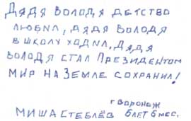 МИША СТЕБЛОВ (6 лет), г. ВОРОНЕЖ: «Маленький Вова Путин» |