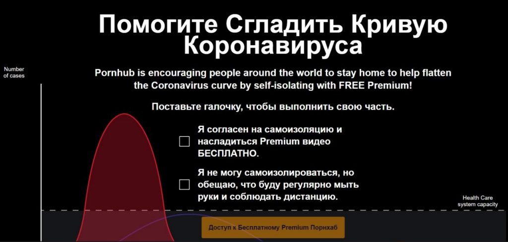 Ведущий порнографический ресурс PornHub решил по-своему поддержать борьбу с коронавирусом. Чтобы мотивировать людей по всему миру оставаться дома и не разносить заразу, владельцы сайта поступились самым важным для них — прибылью.