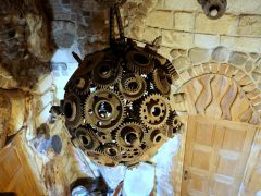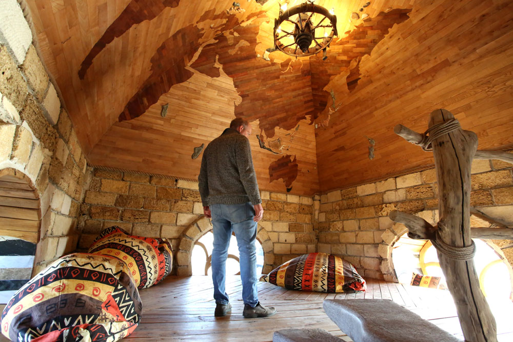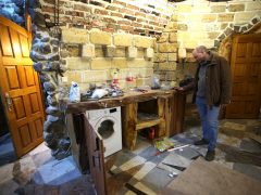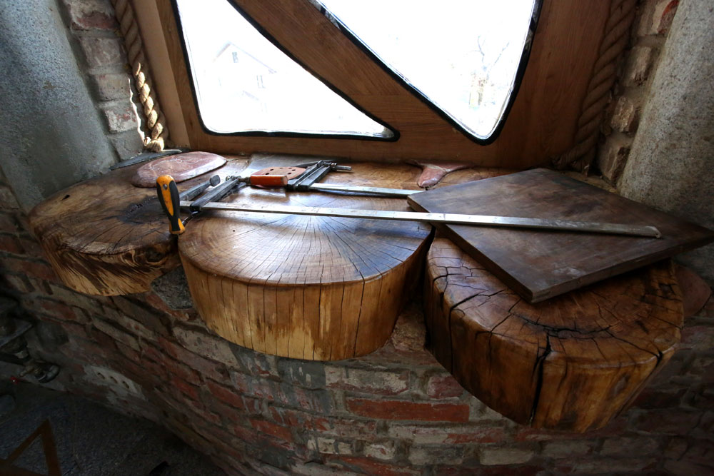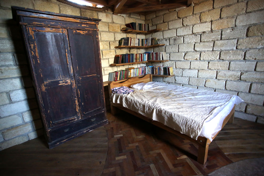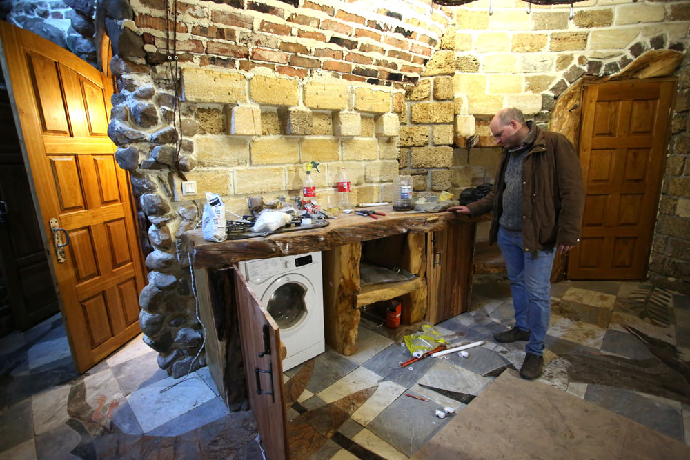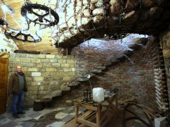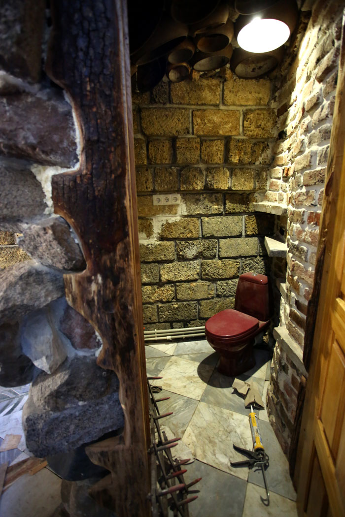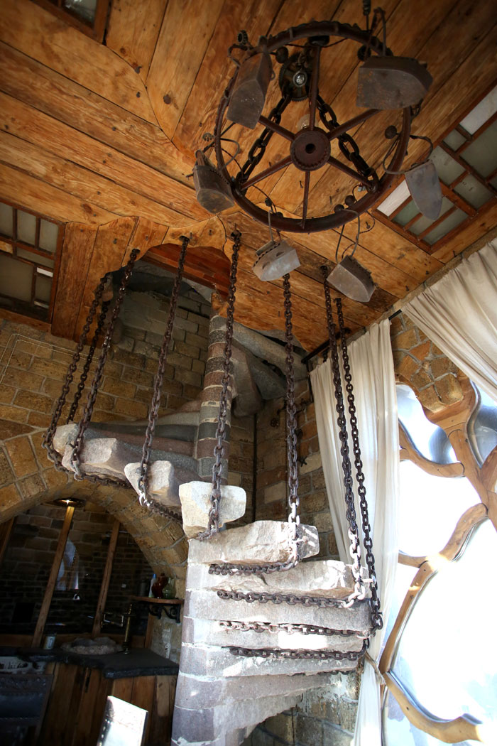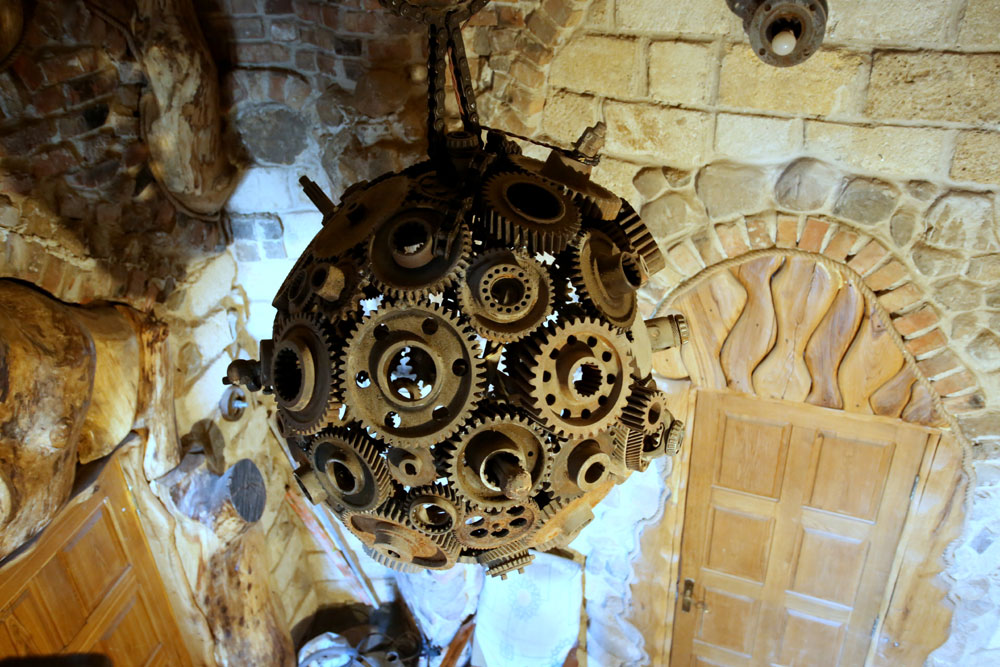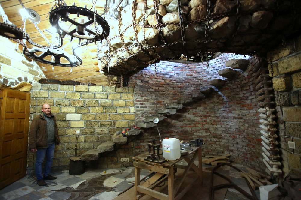 А у меня здесь все натуральное. Каждый из предметов интерьера, быта имел свою историю. Это сильно воздействуют на того, кто рядом. В одном из коридоров, например, в стене — часть могильного надгробия. Выброшенного кем-то, извините, на кладбищенскую помойку. Не каждому гостю здесь все нравится. Многое зависит от особенностей человека, состояния души, времени года. Но лично для моей энергетики — место получилось идеальное.
