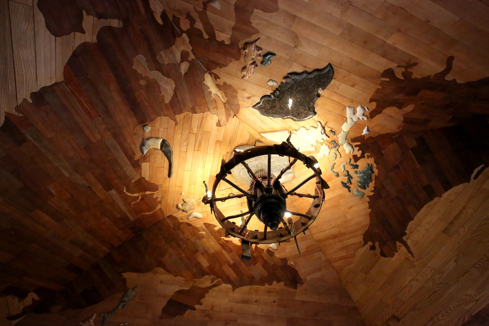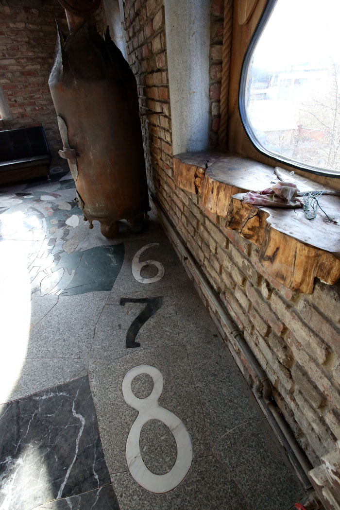 Строители, узбеки и таджики, тоже вкладывали сюда частички своих культур, традиций. Получилась стилистически мешанина, сотканная из интернациональных мотивов. А вот на полу результат моего яркого впечатления от поездки в Перу. Календарь майя со вставками камней разных пород. А железный камин выглядит, будто вырос из фильма «Кин-дза-дза!» Георгия Данелии. Или посмотри на ванну, вырезанную из куска серого каменногорского гранита. Формой напоминает саркофаг. Когда в нее забираешься, столько эмоций накатывает! Будто в другой мир уплываешь.