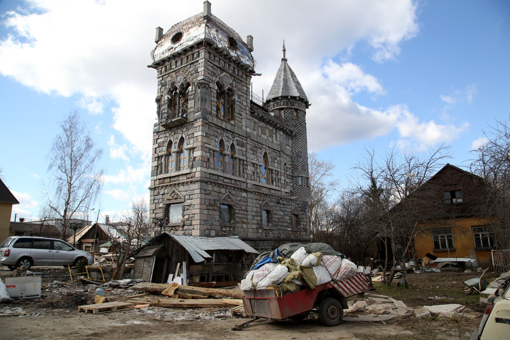 — Не поверишь, строительство началось практически без денег, — рассказывает Александр. — Купил только этот кусок земли в Салтыковке. Все остальное — почти задарма. Поезжай в любую область, соседнюю с Московской, загляни в пункт приема металлолома или на барахолку. И по дешевке покупай любые артефакты, какие душе угодно.
