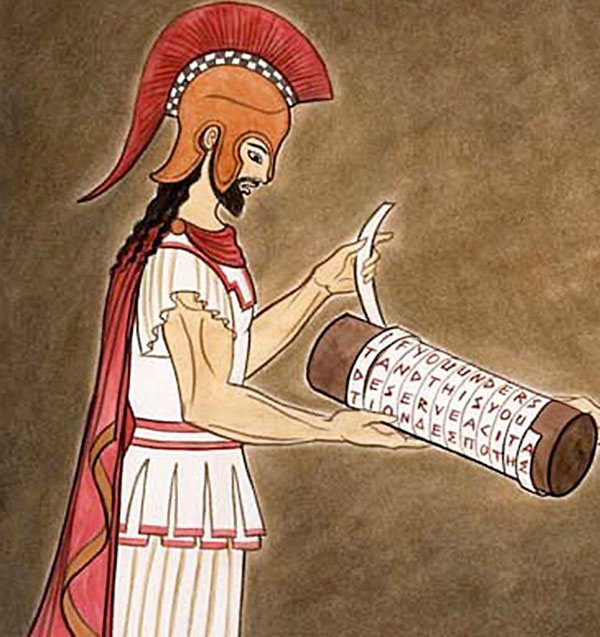 «Скитал» в переводе с греческого — «жезл». Древнее устройство, которое легко сделать. Возьмите любой цилиндр — маркер или ручка от швабры подойдут. Намотайте полоску бумаги. Пишите сообщение вдоль. На каждом сегменте витка у вас помещается по букве. Теперь размотайте. Получилась полоска с вертикальным столбцом абракадабры. Чтобы собрать сообщение обратно, понадобится цилиндр точно такого же диаметра. Распилите швабру пополам и отдайте второй кусок тому, с кем хотите обмениваться сообщениями.