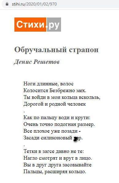 Однако читатели не нашли никакого осуждения в этой «любовной лирике». А тот факт, что Решетов потребовал удалить отзыв о школе и лагере, содержащий данное стихотворение, только усиливает подозрение.