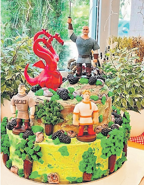 Чиновница поздравила шефа и заодно похвасталась приготовленным для него сюрпризом: «А вот такой торт для главы сегодня испекли в кафе MAMAN. Правда, шедевр? А какое сходство именинника с Георгием Победоносцем!»