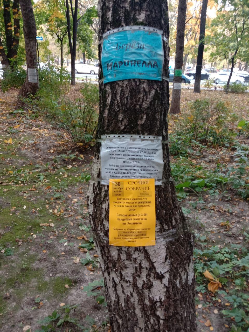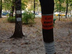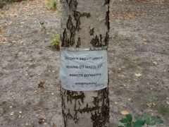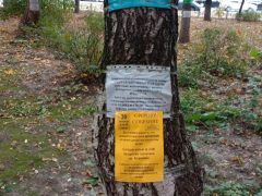Рядом с табличками уведомление, что вырубка деревьев без разрешения облагается большим штрафом. Кроме штрафа пугают проклятиями. Отчаявшиеся жители решили перенести градостроительную борьбу в оккультное пространство. Проблема настолько болезненная, что любое заступничество в помощь.