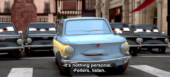 Антигерой Владимир Багажников - глава преступной группировки «Ведер» - представлен в мультфильме в виде экспортной модели ЗАЗ-968А Yalta классической желто-голубой расцветки. У него есть телохранитель Толга, ЗАЗ-968 черного цвета.