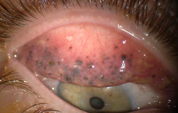 Как пишет The Sun, офтальмолог осталась в шоке: под веками Терезы обнаружили твердые кальцифицированные шишки, известные как конкременты. Это – скопившиеся остатки туши, которые буквально въелись в слизистую.